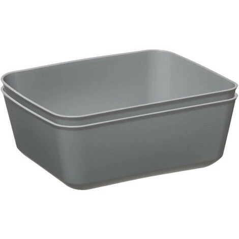 Five – Lot de 2 Bacs de rangement en plastique flex Gris (-) Dimensions 1 bac : L.17.1 x P. 12.8 x H. 6.3 cm –