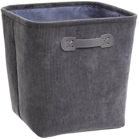 Five – Boite de rangement en velours côtelé Gris 31 x 31 cm (-) Dimensions : L.31 x P. 31 x H. 31 cm –