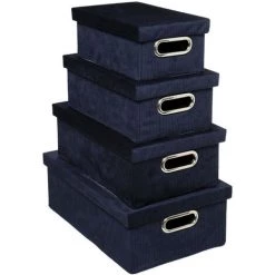 Five – Lot de 4 Boîtes de rangement avec poignées en Velours Bleu (-)