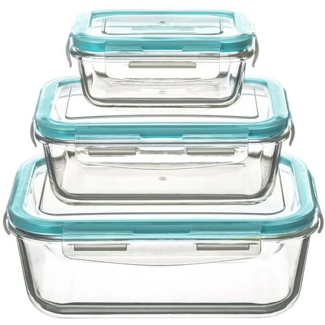 Stockez vos denrées alimentaires en toute sécurité avec ce lot de 3 boîtes rectangulaires en verre Clipeat avec couvercle hermétique grâce au système de « clips ».