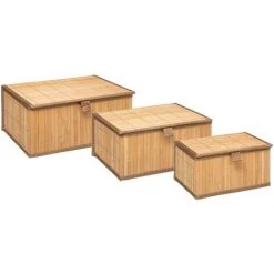 A la fois moderne et original, découvrez le lot de 3 paniers de rangements avec couvercles en bambou.