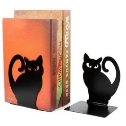 FUIENKO 85DD – Porte-livre En Fer Et Métal Antidérapant, Support De Livre, Unique, Aspect Chat Persan, Serre-livres épais