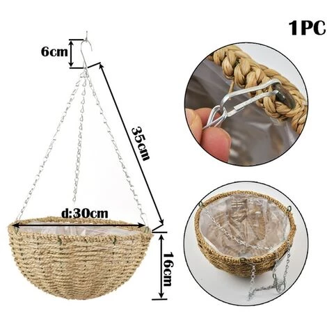 Nom du produit: panier suspendu en paille pot de fleur
