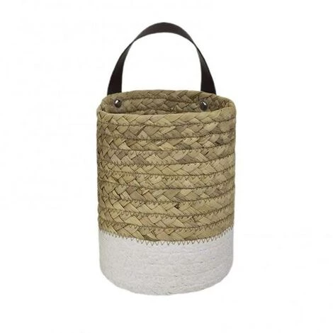 FUIENKO Panier De Rangement En Rotin Pour Plantes De Jardin, Pot De Fleurs Fait à La Main, Conteneur De Rangement En Jonc De Mer Pliable Suspendu à Poignée Tissée Pour Jouets 1 Pièce,White Multicolor S