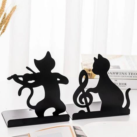 FUIENKO Porte-livre Décoratif En Métal, 1 Paire, Créatif, En Forme De Chat, Noir, Support Artistique Pour Livre De Bureau, Pour La Maison Et Le Bureau, Organisateur De Bouchons De Livres,Violin Cat
