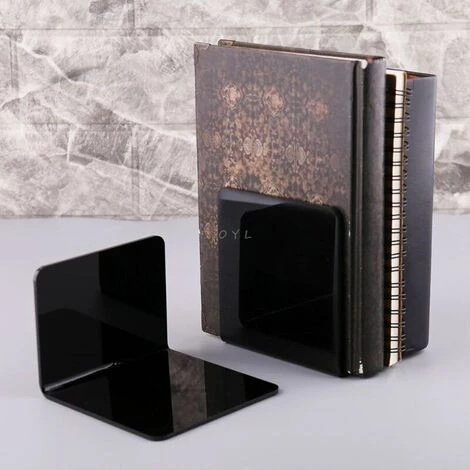 FUIENKO Serre-livres En Acrylique Noir En Forme De L, 2 Pièces, Organisateur De Bureau, Support De Livre, Accessoires De Papeterie Scolaire Et De Bureau,S