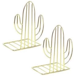 FUIENKO Support De Livre En Forme De Cactus, 1 Paire, Support De Livre En Fer, Serre-livres, étagère De Livre, Organisateur De Bureau, Support De Rangement Pour école,Golden,Espagne