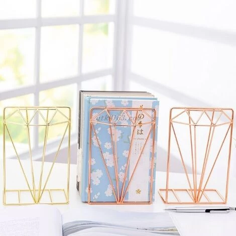 1 Pc livre Support Support crĂ©atif en forme de diamant serre-livres en mĂ©tal organisateur de bureau Ă©tagère de rangement Â