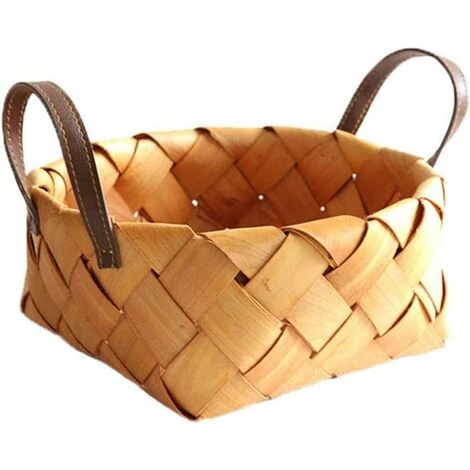 Panier en bois tressé Japonais rond de stockage de fruits de pain Panier tissé à la main avec panier de rangement de cuisine portable, accessoires de photographie