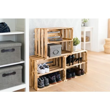 GrandBox Caisse en bois flammé FLAME-BOX, avec étagère, caisse a vin, caisse a fruits, caisse de décoration, rangement Vintage Shabby Chic, caisse a bois de chauffage