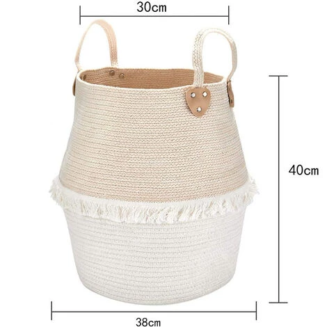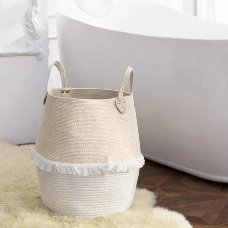Durable et portable – cette pièce durable est tissée en coton très élastique et peut facilement reprendre sa forme en la remplissant d’articles. 2 grandes poignées vous permettent de transporter et de déplacer le panier.