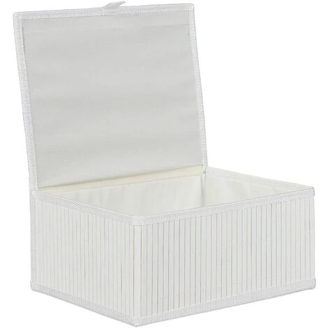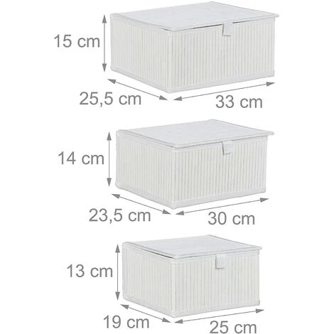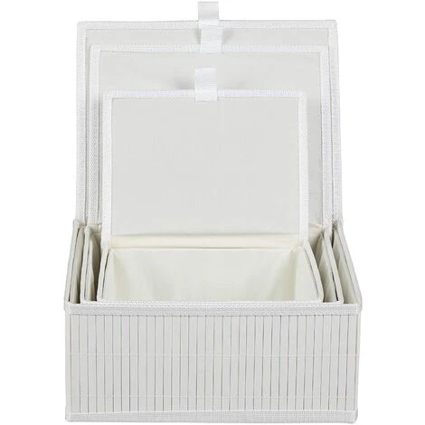Présentation produit: Set de 3 paniers corbeille de rangement décoration en bambou blanc