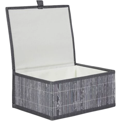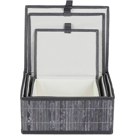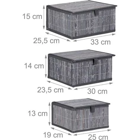 Présentation produit: Set de 3 paniers corbeille de rangement décoration en bambou gris