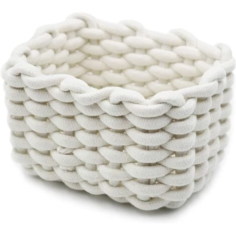 HKLFFJA Panier De Rangement En Corde De Coton Organisateurs De Paniers De Rangement Rectangulaires Naturels DéCoratifs Pour Chambre De BéBé, Chambre à Coucher, Salon Blanc Small