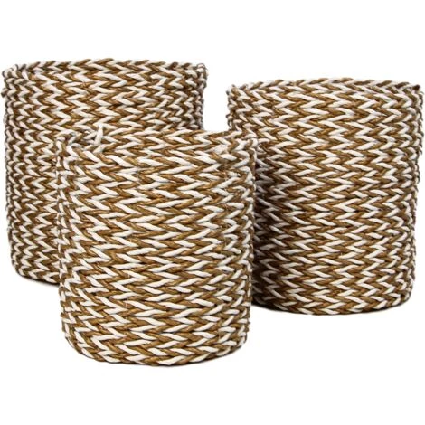 HSM COLLECTION Ensemble De 3 Paniers Raphia/seagrass – Naturel/blanc ø20*20/ø18*18/ø16*17 – Naturel/Blanc