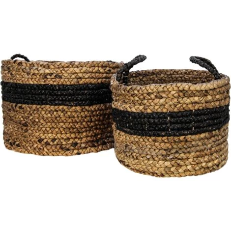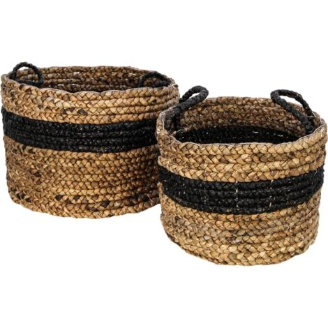 HSM COLLECTION Malibu – Set De 2 Paniers – Jacinthe D’eau – Naturel/noir – 40 X 27 X 40 Cm – Noir/naturel