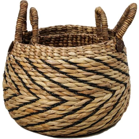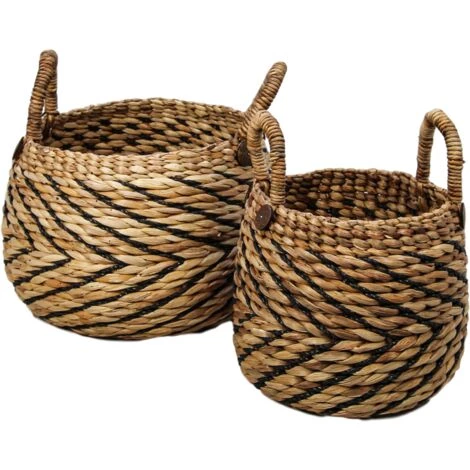 HSM COLLECTION Set De 2 Paniers De Rangement – Jacinthe D’eau – Naturel/noir – 40 X 42 X 40 Cm – Naturel/Noir