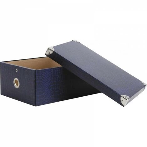 Boite pliable en carton bleu, livrée à plat.Matière : carton croco. bleu