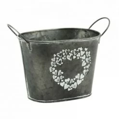 Corbeille en métal à motif coeur teinté blanc et embossé. 2 anses.Matière : Métal
