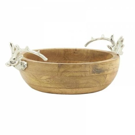 Corbeille en manguier avec 2 poignées Cerfs en aluminium.Matières : manguier et Aluminium