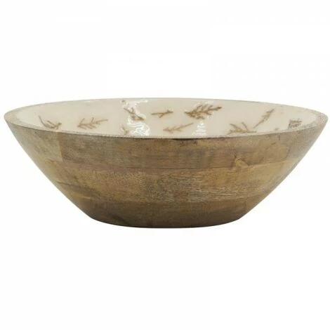 Corbeille en manguier et résine blanche décorée de branches de fougères dorées.Matières : manguier et résine