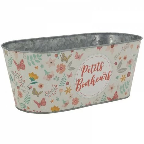 Corbeille ovale en métal galvanisé, décor printanier avec imprimé « Petits bonheurs ».Matière : métal galvanisé