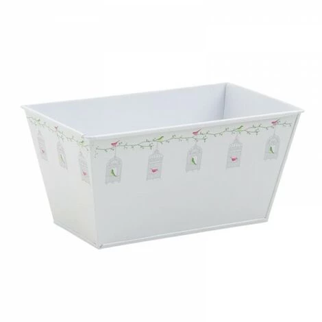 Corbeille rectangulaire en métal laqué blanc, motifs oiseaux.Matière : métal laqué