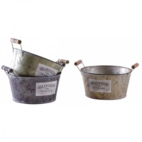 Corbeille ronde en métal -Blossom-. Poignées en bois. 3 coloris assortisMatière : Métal