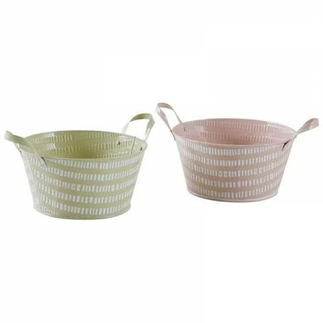 Corbeille ronde en métal laqué, deux anses. Coloris assortis.Matière : métal laqué