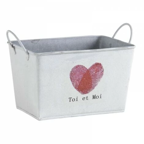 Corbeille rectangulaire en métal laqué, motif coeur « Toi et Moi ».Matière : métal laqué