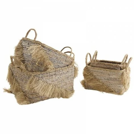 Corbeilles de rangement rectangulaires en bananier avec franges, 2 anses.Matières : Bananier et sisal