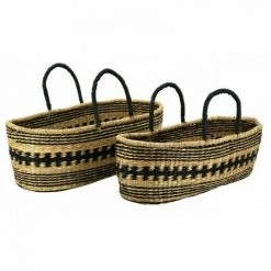 JARDIBRICODECO Corbeilles Ovales En Jonc Naturel Et Noir