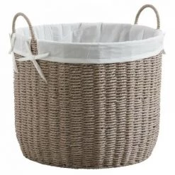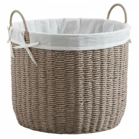 Corbeilles rondes en papier cordé taupe et métal, 2 anses, doublure coton et polyester.Matière : papier cordé taupe