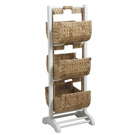 Meuble de rangement avec structure bois et 3 corbeilles en jacinthe.Matières : Bois et jacinthe