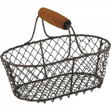 Petit panier en grillage noir et poignée en bois.Matière : grillage vieilli