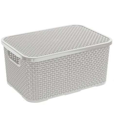 JARDIBRICODECO Panier En Rotin Avec Un Couvercle Gris 10L