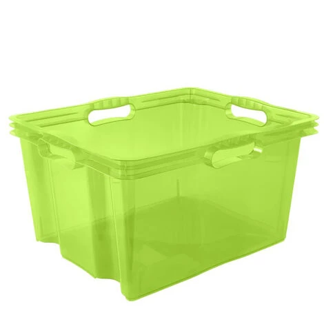 2 x Pour un ordre plus important à la maison: Boîte de rangement polyvalent transparent avec poignées intégrées – Idéal pour sauver et commander des jouets, des décorations, des collections et autres petits articlesGrande stabilité grâce au bord renforcé de la boîte, de transport facile et sûr grâce à 2 poignées ergonomiques robustes, récupération facile des objets sauvegardés grâce à la visibilité de tous les côtés.Design moderne sans bords tranchants, couvercle disponible séparément, coffre-fort empilant avec ou sans couvercle grâce à son système d`empilement, peut être niché à l`intérieur d`une autre sans capuchon, facile à nettoyer avec un chiffon humide ou une épongeFabriqué en Europe, en plastique (PP) robuste et de haute qualité, sans BPA ni plastifiants, sans émission de substances nocivesContenu: 1 boîte de rangement Franz, taille XL, dimensions (lxanxal): 43 x 35 x 23 cm, capacité: 24 L, vert transparent