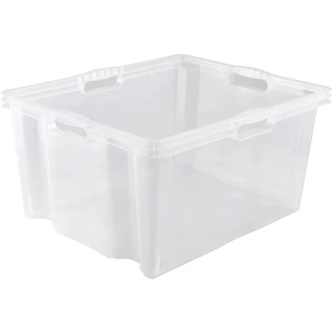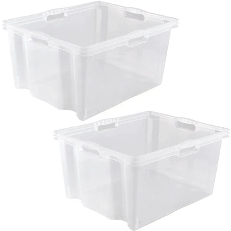 2 x Pour un ordre plus important à la maison: Boîte de rangement polyvalent transparent avec poignées intégrées – Idéal pour sauver et commander des jouets, des décorations, des collections et autres petits articlesGrande stabilité grâce au bord renforcé de la boîte, de transport facile et sûr grâce à 2 poignées ergonomiques robustes, récupération facile des objets sauvegardés grâce à la visibilité de tous les côtés.Design moderne sans bords tranchants, couvercle disponible séparément, coffre-fort empilant avec ou sans couvercle grâce à son système d’empilement, peut être niché à l’intérieur d’une autre sans capuchon, facile à nettoyer avec un chiffon humide ou une épongeFabriqué en Europe, en plastique (PP) robuste et de haute qualité, sans BPA ni plastifiants, sans émission de substances nocivesContenu: 1 boîte de rangement Franz, taille XXL, dimensions (lxanxal): 52 x 43 x 26 cm, capacité: 44 L, transparent