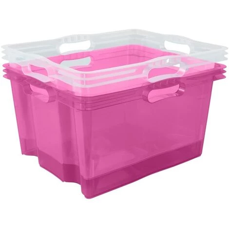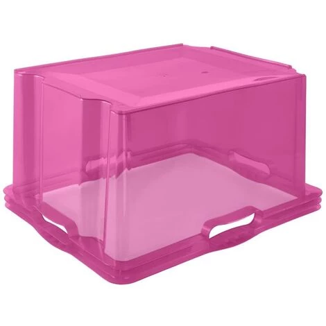 Pour plus d’ordre dans la maison : boîte de rangement polyvalente transparente avec poignées intégrées – idéale pour ranger et trier les jouets, les décorations, les collections et autres petits objets.Grande stabilité grâce au bord renforcé de la boîte, transport facile et sûr grâce aux 2 poignées ergonomiques robustes, récupération facile des articles stockés grâce à la visibilité de tous les côtés.Design moderne sans bords tranchants, Couvercle disponible séparément, Empilage sûr avec ou sans couvercle grâce au système d’empilage, Peut être emboîté dans un autre sans couvercle, Facile à nettoyer avec un chiffon humide ou une éponge.Fabriqué en Europe, plastique (PP) de haute qualité et robuste, sans BPA ni plastifiant, sans émission de polluants.Contenu : 1 Boîte de rangement Franz, Taille XL, Dimensions (LxlxH) : 43 x 35 x 23 cm, Capacité : 24 l, Rose transparent