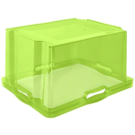 Pour plus d’ordre dans la maison : boîte de rangement polyvalente transparente avec poignées intégrées – idéale pour ranger et trier les jouets, les décorations, les collections et autres petits objets.Grande stabilité grâce au bord renforcé de la boîte, transport facile et sûr grâce aux 2 poignées ergonomiques robustes, récupération facile des articles stockés grâce à la visibilité de tous les côtés.Design moderne sans bords tranchants, Couvercle disponible séparément, Empilage sûr avec ou sans couvercle grâce au système d’empilage, Peut être emboîté dans un autre sans couvercle, Facile à nettoyer avec un chiffon humide ou une éponge.Fabriqué en Europe, plastique (PP) de haute qualité et robuste, sans BPA ni plastifiant, sans émission de polluants.Contenu : 1 Boîte de rangement Franz, Taille XL, Dimensions (LxlxH) : 43 x 35 x 23 cm, Capacité : 24 l, Vert Transparent