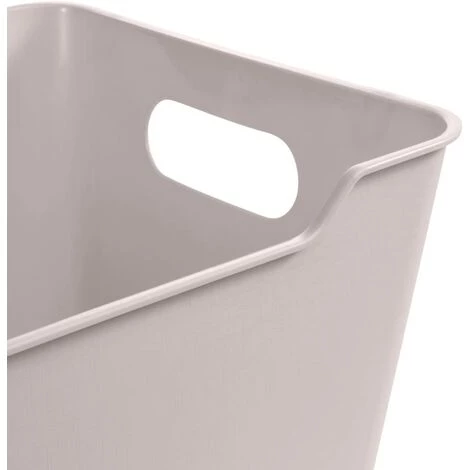 Boîte de rangement décorative pour ranger les petits objets et les retrouver en un clin d’œil. Polyvalente dans la cuisine, le salon ou le bureau.Rangement pratique : Peut être emboîté ou empilé les uns sur les autres pour gagner de l’espace, dispositif antidérapant intégré, 2 poignées latérales pratiques pour un transport facile et confortable.Design élégant : surface texturée moderne et résistante aux rayures dans des couleurs discrètes, bords arrondis sans arêtes vives.Fabriqué en Europe, plastique robuste de haute qualité (PP), sans BPA ni plastifiant, pas d’émission de substances nocives, facile à nettoyer avec un chiffon ou une éponge humide.Contenu : 1 boîte de rangement Lotta, Dimensions (HxLxW) : 40 x 28 x 25 cm, Capacité ; 20 l, Couleur : gris