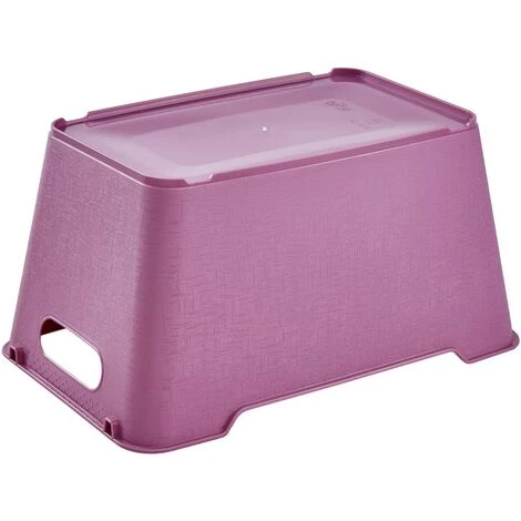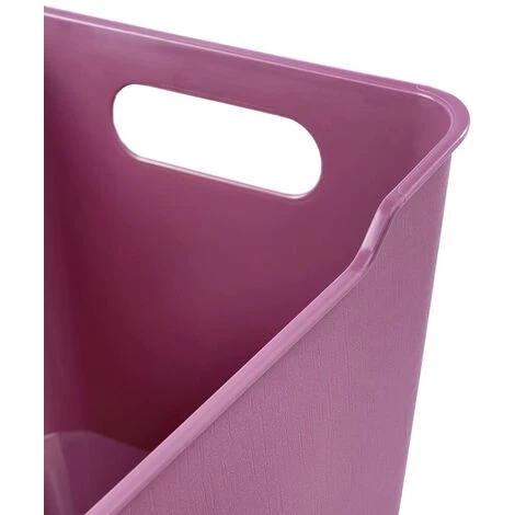 Boîte décorative pour ranger les petits objets et les retrouver d’un coup d’œil, polyvalente dans la cuisine, l’armoire, la salle de bain ou le bureau.Rangement pratique : Peut être emboîté ou empilé les uns sur les autres pour gagner de l’espace, dispositif antidérapant intégré, 2 poignées latérales pratiques pour un transport facile et confortable.Design élégant : surface texturée moderne et résistante aux rayures dans des couleurs discrètes, bords arrondis sans arêtes vives.Fabriqué en Europe, plastique robuste de haute qualité (PP), sans BPA ni plastifiant, pas d’émission de substances nocives, facile à nettoyer avec un chiffon ou une éponge humide.Contenu : 1 boîte de rangement Lotta, Dimensions (HxLxW) : 29,5 x 19 x 15 cm, Capacité ; 6 l, Couleur : Framboise
