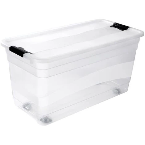 Panier de rangement pratique et robuste avec couvercle et rouesLe couvercle peut être fermé avec des clips sur le côtéAvec des poignées à la base pour les retirer facilement des armoiresPratique à utiliser: avec des roues à roulettes intégrées dans la baseDesign attrayantLes cases avec couvercle peuvent être empiléesLes boîtes peuvent s’adapter sans couvercle