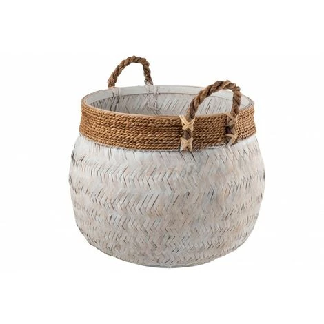 LANADECO Panier + Anse Boule Bambou + Corde Blanc Large