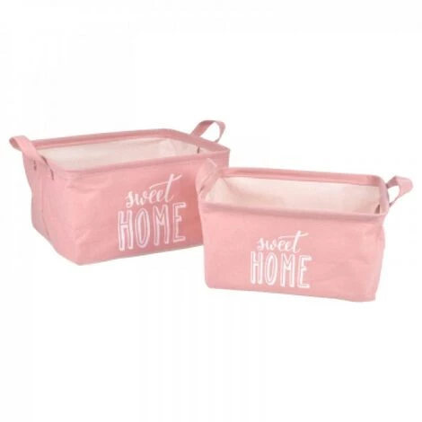 set 2 paniers rangement canvas 20*28*h12.5/25*32*h16.5cm sweet home rose poudre_x000D_Groupe de produit: salle de bain, rangement salle de bain, panieres
