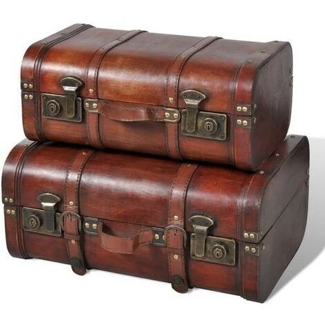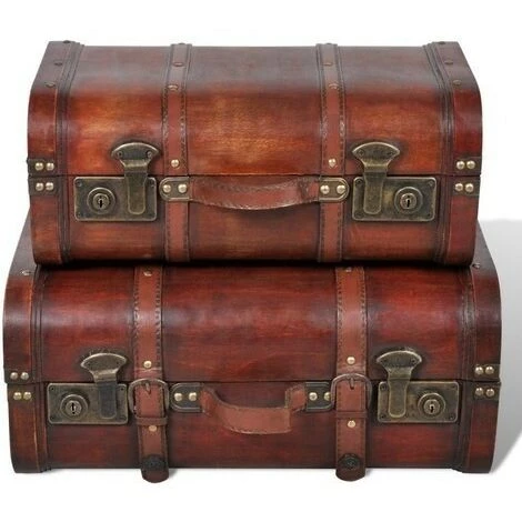 LES TENDANCES Coffre De Rangement Bois Marron Canvas – 2 Pièces