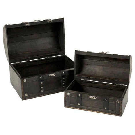 Cet ensemble est composé de 2 jolies de différentes tailles vous offrant un bel espace de rangement et qui embelliront votre intérieur. Elles sont faites en bois massif noir agrémenté de cuir noir et de métal.Les autres articles de la collection peuvent compléter cet assortiment pour créer une atmosphère harmonieuse.Dimensions : L 36 x H 23 x P 25 cmGarantie : 2 ansNous ne livrons pas en Corse.