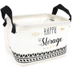 Ce petit panier de rangement rectangulaire Ă l’aspect froissĂ© et joliment illustrĂ© d’une citation « Happy storage » (en français « rangement sympa ») est l’accessoire idĂ©al pour votre salle de bain. Vous pouvez l’utiliser comme accessoire de rangement pour produits, accessoires de coiffure, cosmĂ©tiques mais aussi pour dĂ©corer votre intĂ©rieur.