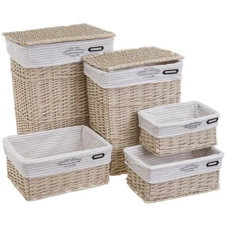 LOLAHOME Set De 2 Paniers Et 3 Paniers En Osier Et Tissu Beige Tressé