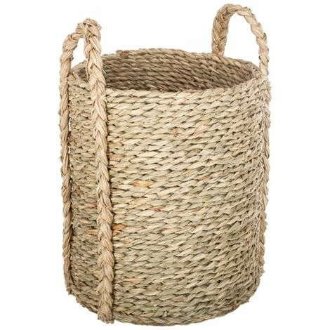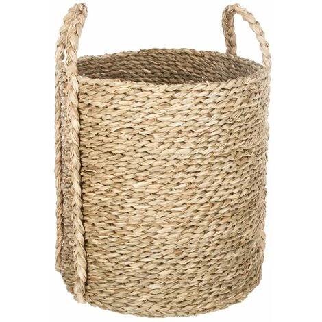 Lot de 3 paniers ronds seagrass naturel, osier, dimensions S : L. 21 x l. 21 x H. 25 cm / M : L. 30 x l. 27 x H. 30 cm / L : L. 33 x l. 32 x H. 35 cm